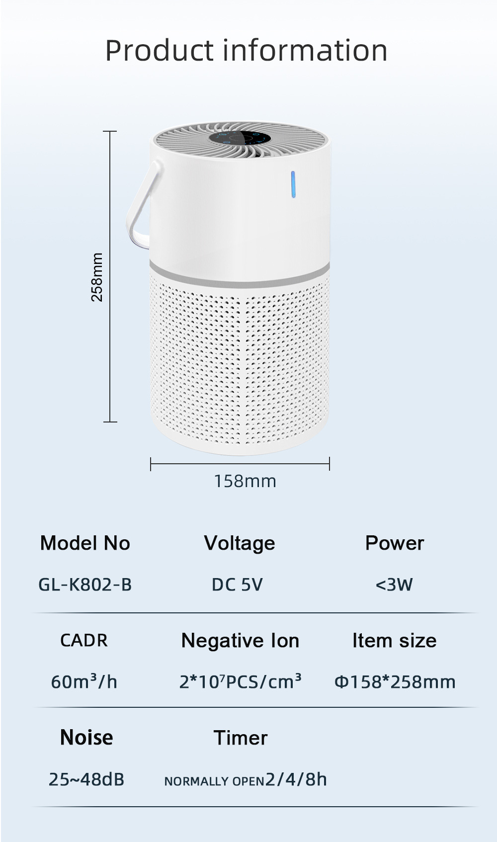 Function: Negative Ion, Formaldehyde Removal, Pet Odor Elimination