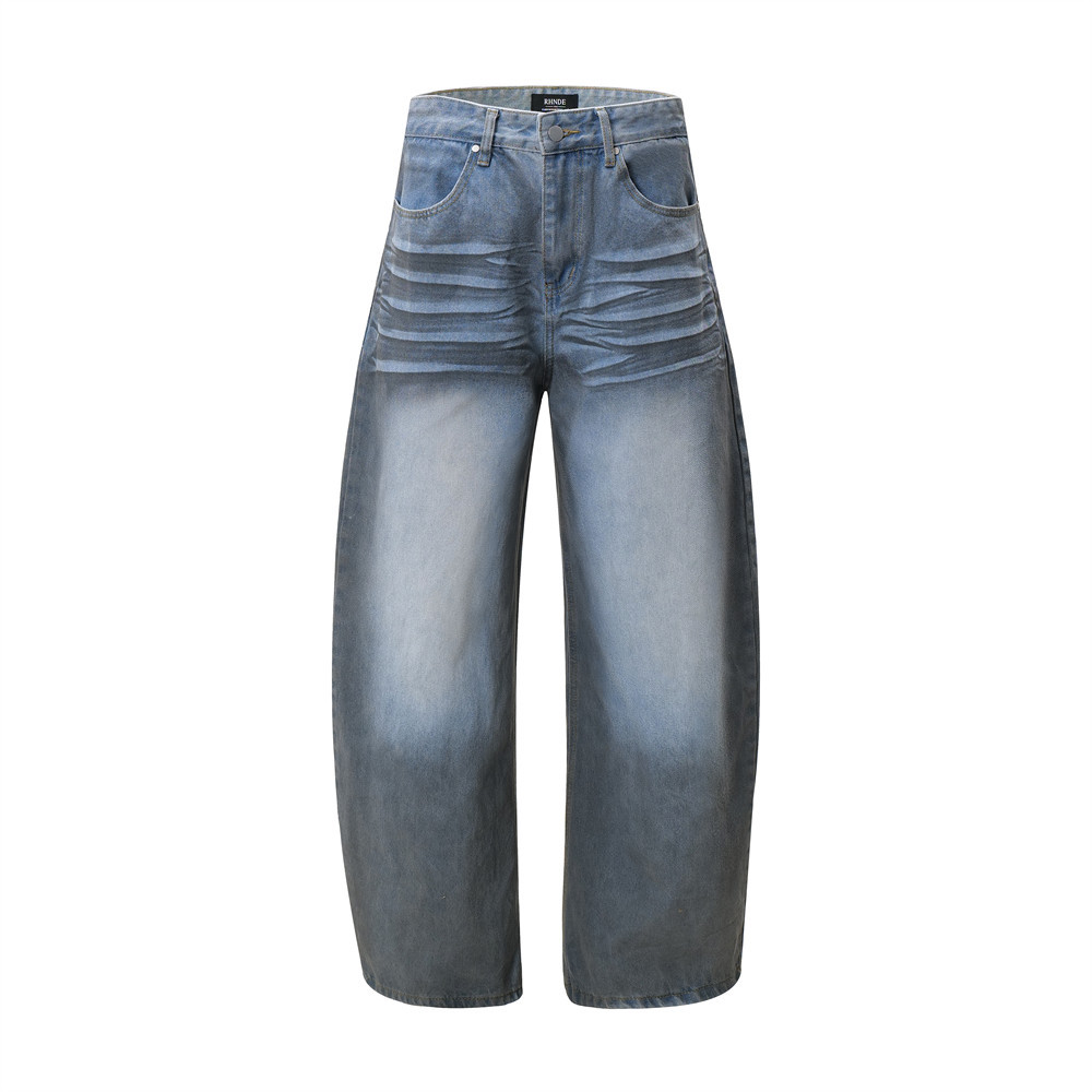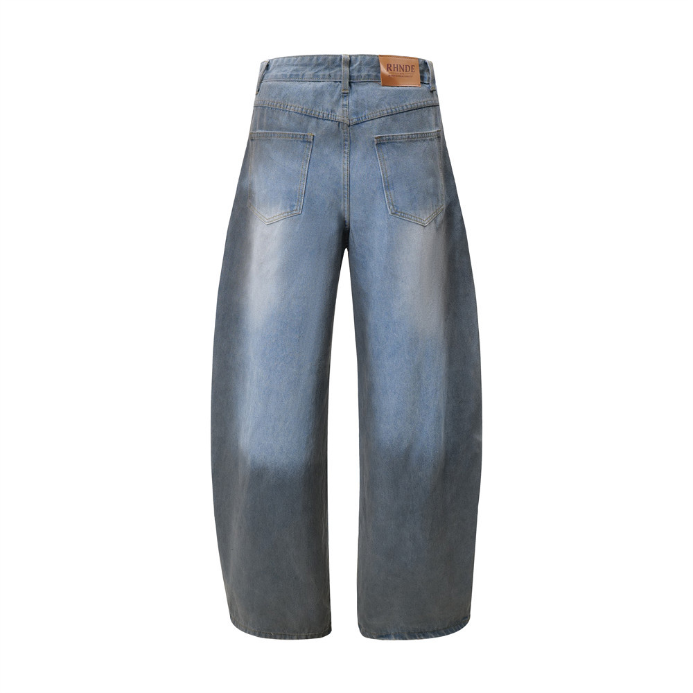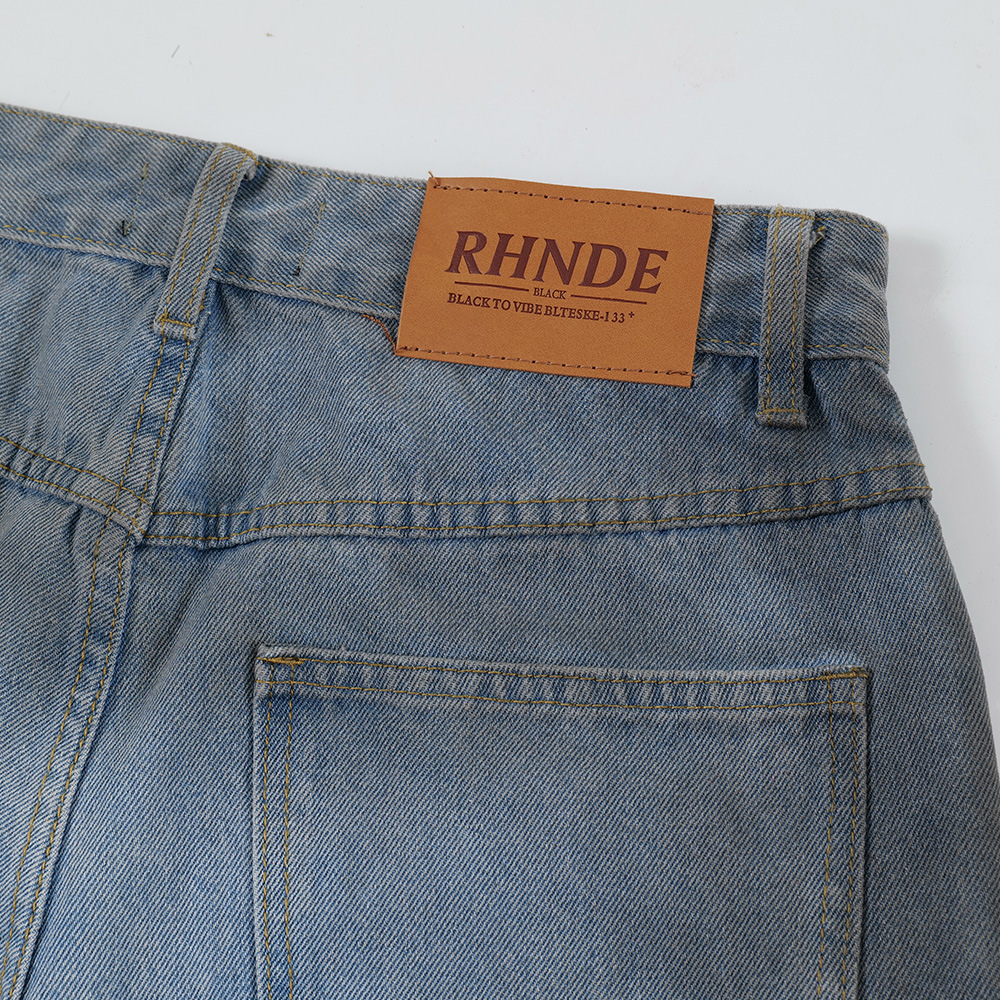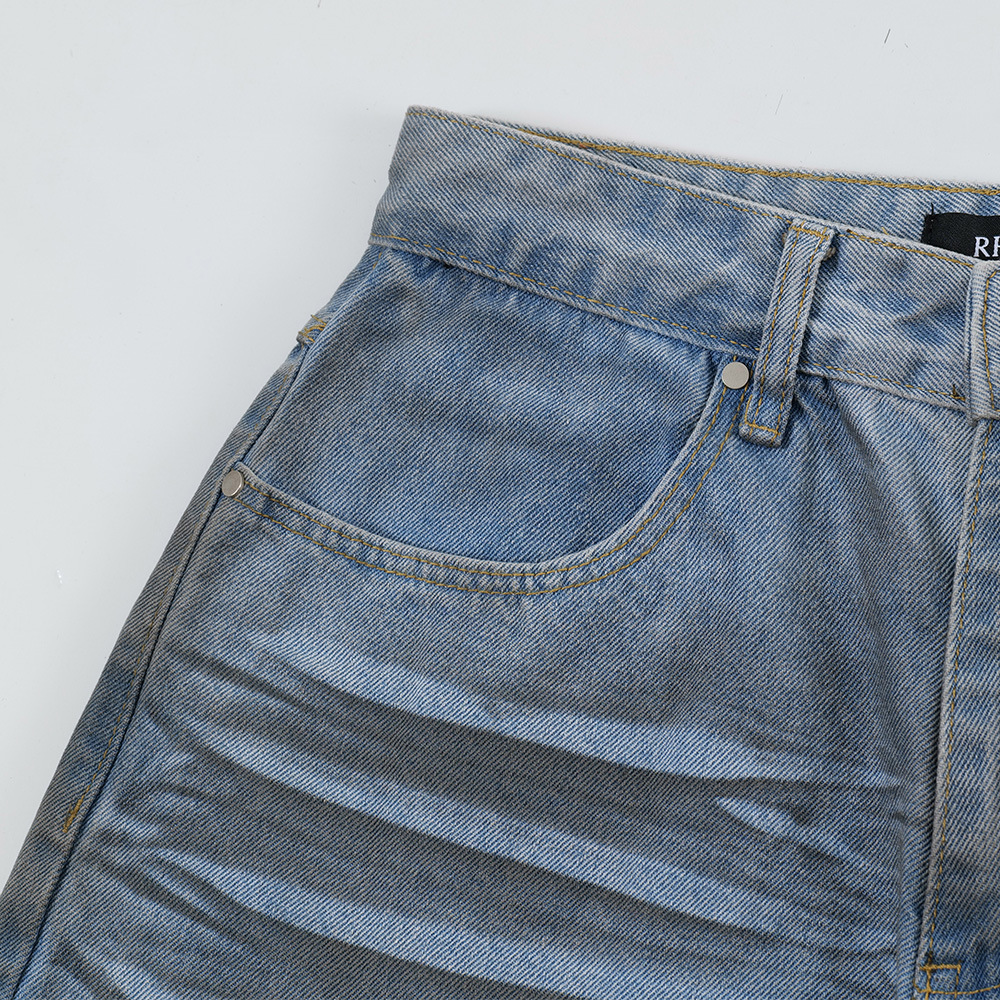 Be the first to review “Color blocking spray painting denim curved pants”